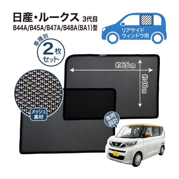 ルークス BA1型 専用設計 サンシェード メッシュ 網戸 リヤサイド リヤクォーター ウインドウ ウィンドウ プライバシー 遮光 遮熱 マグネット カーテン ROOX