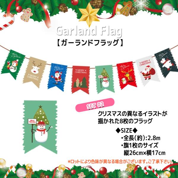 全長約2.8m クリスマスの異なるイラストが描かれたカラフルフラッグ8枚 高26cm×横17cm(1枚あたり)
