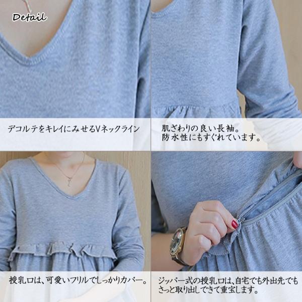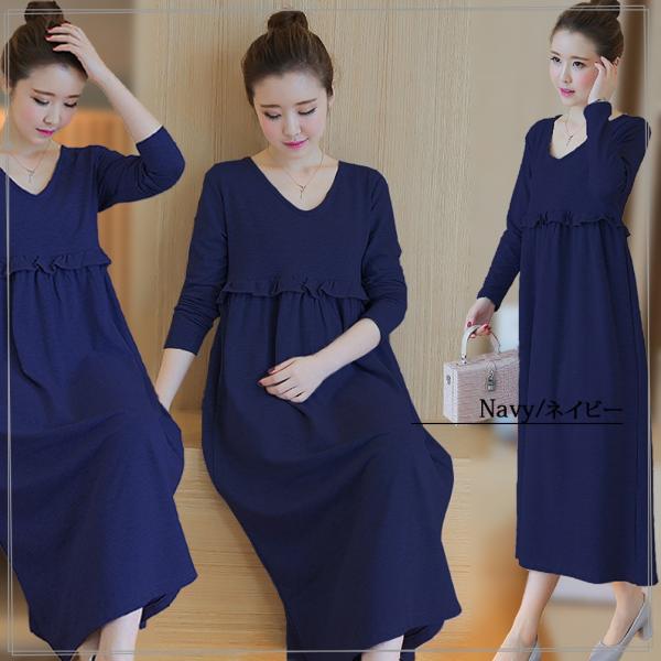 授乳服 マタニティ ワンピース 長袖 ロング 授乳口付き 胸フリル 妊婦服 妊婦用 マタニティウェア