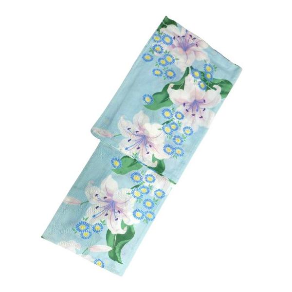仕立て上がり浴衣 浴衣 綿絽 対応身長 155cm-168cm 綿絽織 水色地 ユリ 柄No.2434 セットにするとさらにお得!!