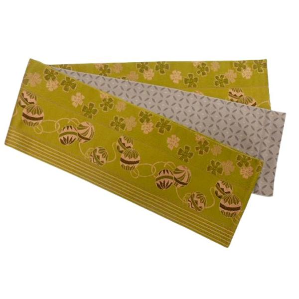 日本製 半幅帯 半巾 細帯 浴衣帯 四寸帯 結び帯 着付け 練習 帯 リバーシブル四寸帯 カラシ 手毬 肌色 七宝 No.50