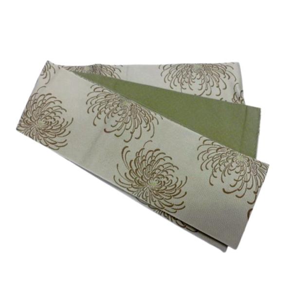 日本製 半幅帯 半巾 細帯 浴衣帯 四寸帯 結び帯 着付け 練習 帯 リバーシブル四寸帯 淡いグリーン地 乱菊柄 No.80