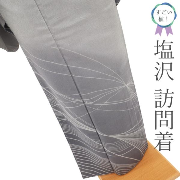 すごい値! 塩沢 訪問着 袷 着物 未使用 正絹 ライトグレー 幾何学文 やまだ織 新古品 仕立て上がり 身丈160 裄丈66 M みやがわ nek01530