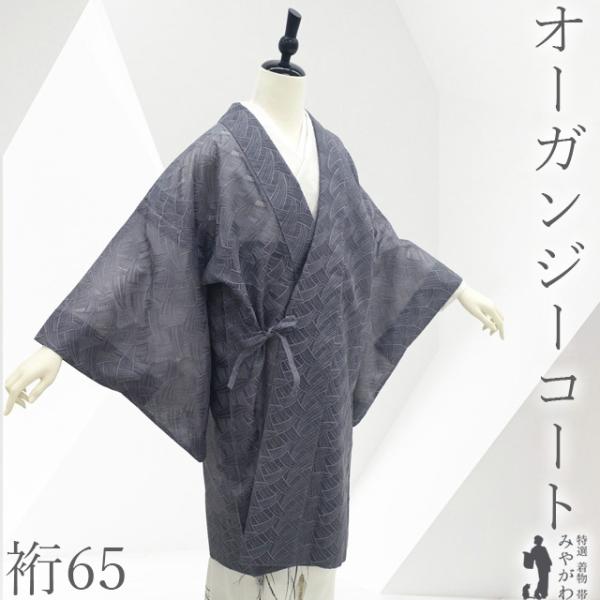 オーガンジー 道中着 単衣 コート リサイクル 葉 春 夏 秋 中古 仕立て上がり 身丈99 裄丈65 Mサイズ 透け感 ハオリモノ みやがわ sb17259