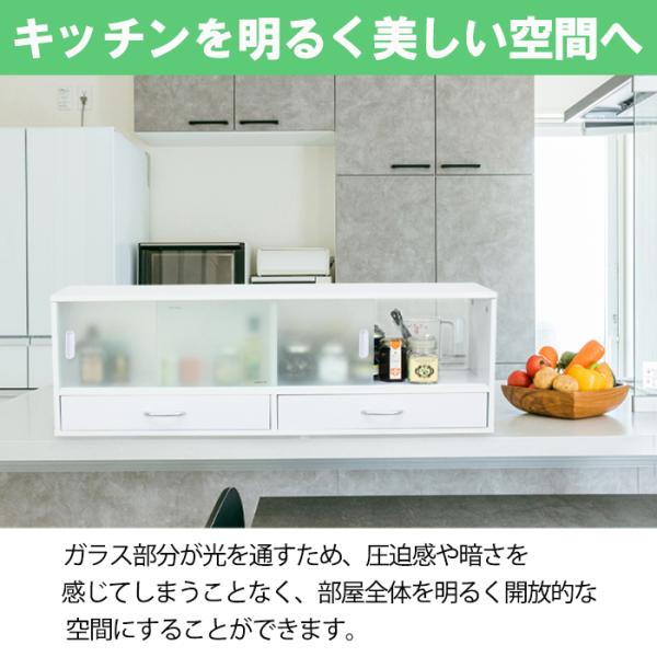 カウンター上収納 ミニ食器棚 幅90cm 両面 ガラス扉 引出し