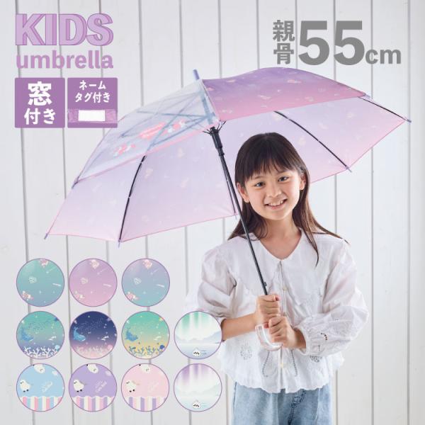 小学生 傘 女の子 長傘 子供用 55cm ワンタッチ ユニコーン アザラシ 海 魚 FRP骨 動物 ジャンプ傘 小学生 通学 雨傘 窓あり パステル 男女兼用 女児 ジュニア