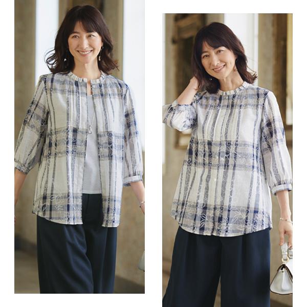 シャツ トップス 服 レディース ファッション 婦人服 ファッション雑貨 誕生日 敬老の日 母の日 お祝い ギフト プレゼント おばあちゃん シニア シルバー世代 祖母 義母 母 40代 50代 60代 70代 80代 チェック 花柄 シック 甘辛 フェミニン 大人かわいい 大人 可愛い かわいい おしゃれ お洒落 こなれ 羽織 フリル襟 ピンタック ふんわり 袖 軽やか タック 綿 100% コットン 華やか 透け感 ビッグチェック 紺 ネイビー ブラウン 引き締め 上品 きれいめ モード 着回し ワンピース チュニック アンサンブル ベスト ニット パンツ スカート ボトム Tシャツ プルオーバー インナー ブラウス ジャンパースカート ブラックフォーマル スーツ バッグ かばん リュック 鞄 ショルダーバッグ ハンドバッグ スマホポシェット スカーフ ストール コーディネート 百貨店通販 大きいサイズ お出かけ 旅行 結婚 記念日 顔合わせ 同窓会 還暦 古希 喜寿 米寿 四十代 五十代 六十代 七十代 八十代 介護 老人ホーム ブランド otonacawaiifuku 京都通販ミヤコ miyako ロリエ Laurier