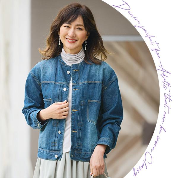 ジャケット レディース おしゃれ 秋冬 40代 50代 60代 70代 80代 ミセス シニア ファッション ラウンドカラーデニムジャケット