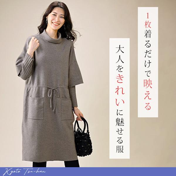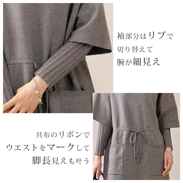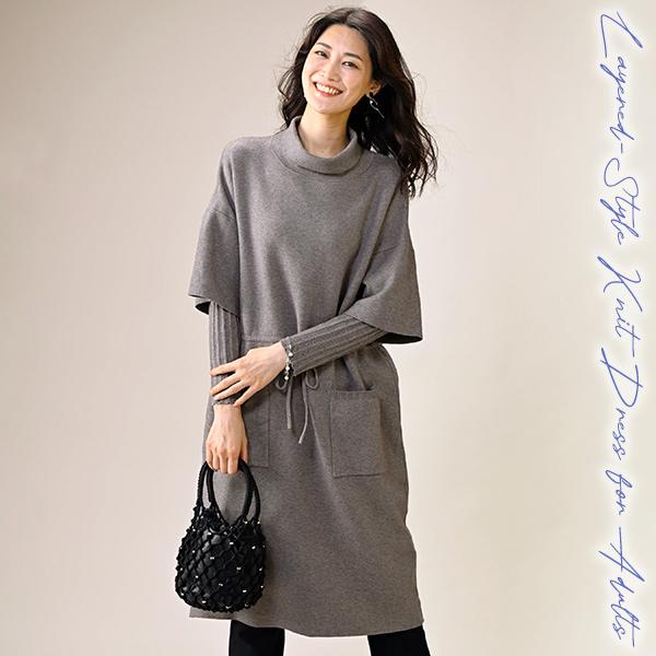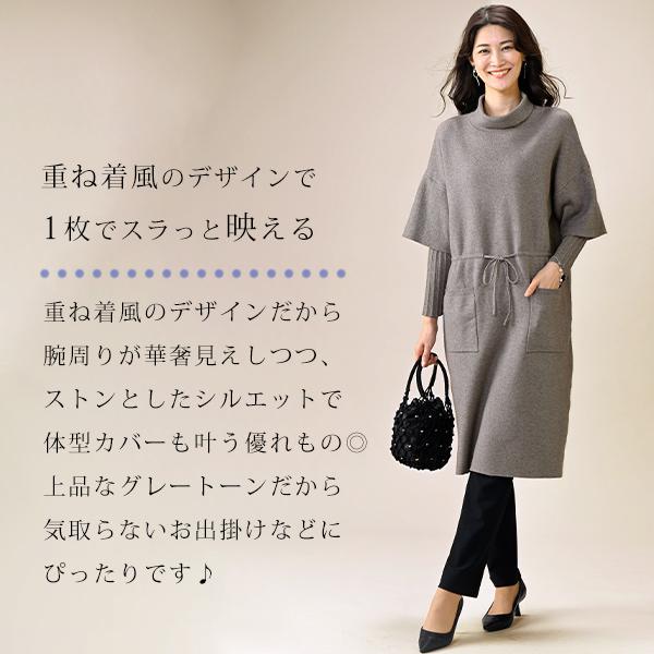 ワンピース きれいめ おしゃれ 秋冬 ミセス シニア ファッション 40代 50代 60代 70代 80代 重ね着風ニットワンピース