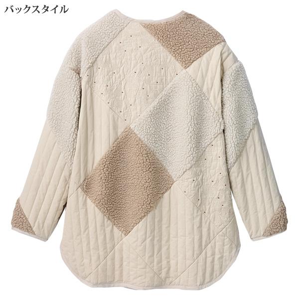 コート アウター レディース おしゃれ ミセス シニア ファッション 50代 60代 70代 80代 秋冬 ボア・キルト刺しゅう パッチワークハーフコート