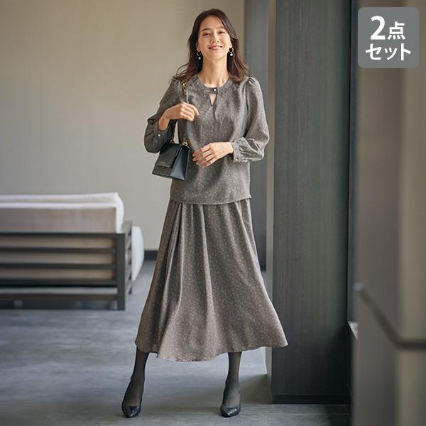 セットアップ レディース おしゃれ 春 秋冬 ミセス シニア ファッション 40代 50代 60代 70代 小花柄ブラウス&スカート