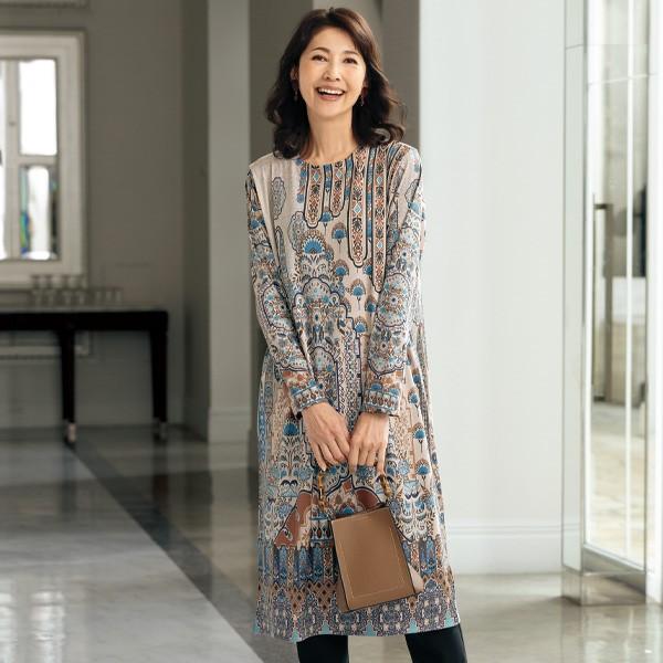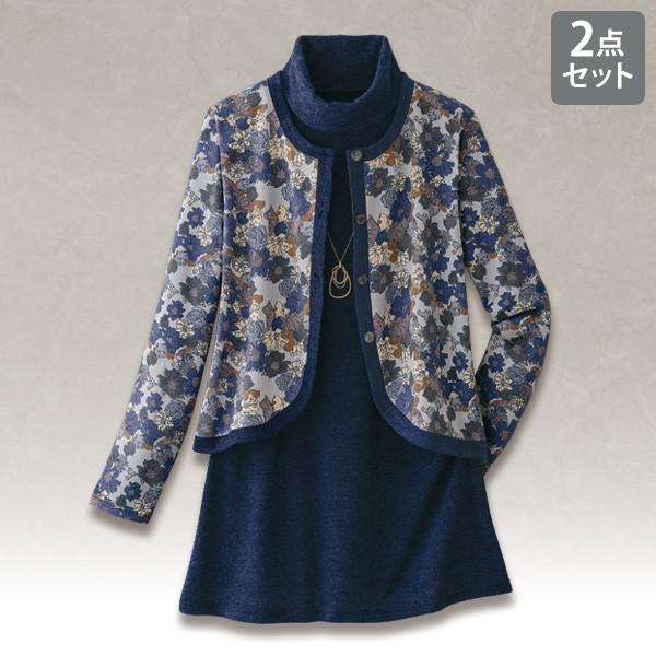 アンサンブル カーディガン レディース おしゃれ 秋冬 ミセス シニア ファッション 40代 50代 60代 70代 80代 花柄プリントデザインアンサンブル