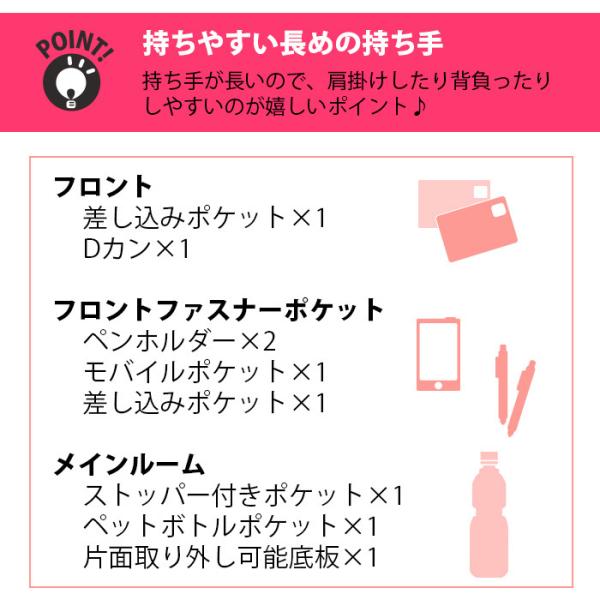 フロントファスナーポケット(内部にペンポケット×2、モバイルポケット×1、オープンポケット×1)