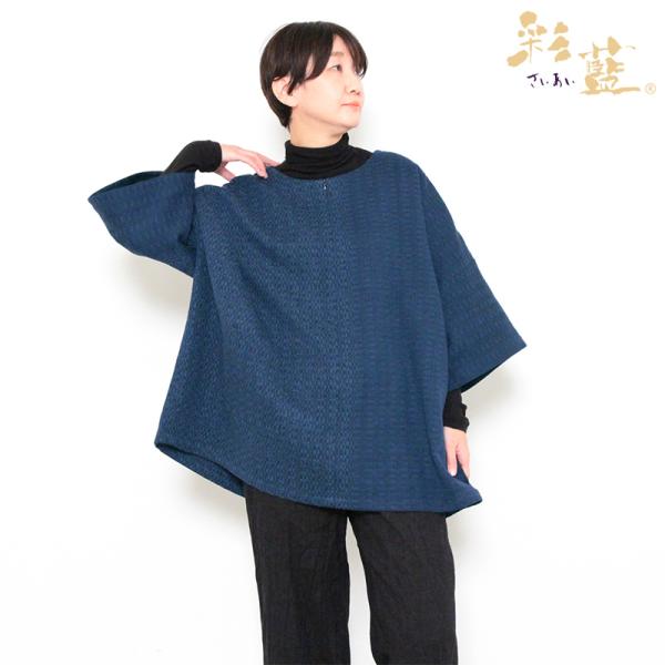 数量限定 彩藍 変わり水鞠チュニックブラウス 紺 綿100% レディース おしゃれ 春 秋 冬 木綿 ギフト 宮田織物 通販サイト・直営店限定販売