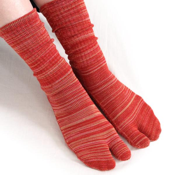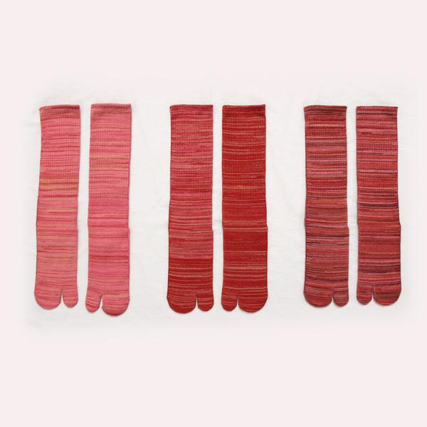 おしゃれな靴下(足袋ソックス)です。1枚1枚異なる不揃いの彩をお楽しみ下さい。日本製