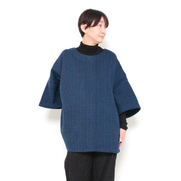 数量限定 彩藍 変わり水鞠チュニックブラウス 紺 綿100% レディース おしゃれ 春 秋 冬 木綿 ギフト 宮田織物 通販サイト・直営店限定販売