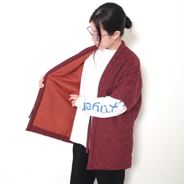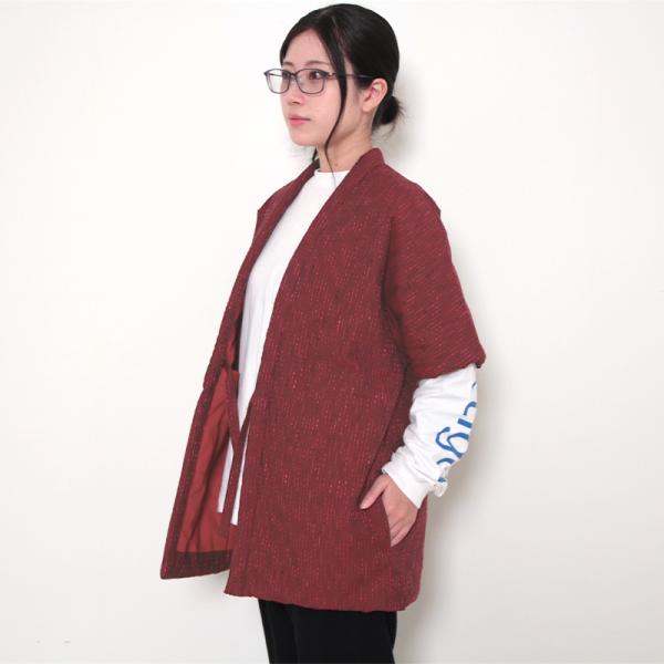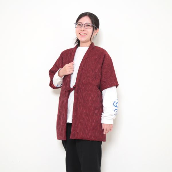 数量限定 五分袖半纏 しずく刺し子 エンジ 中わた:綿100% 身丈74.5cm 日本製 袢纏 半纏 メンズ・レディース 綿入り 和モダン 緑 寒さ対策 防寒 ギフト