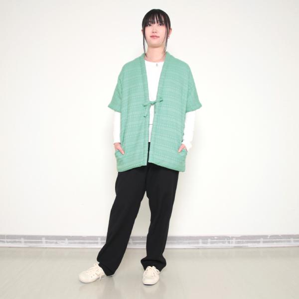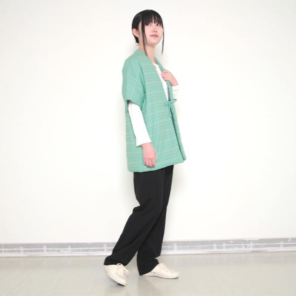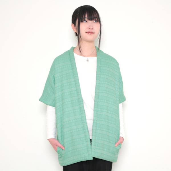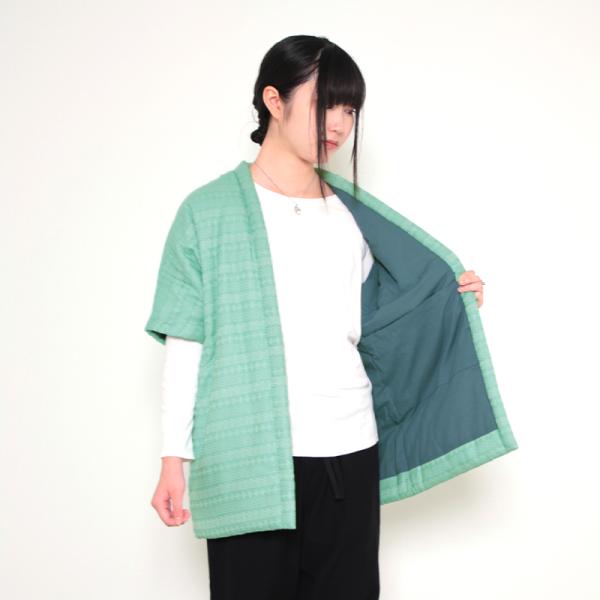 数量限定 五分袖半纏 風雅 グリーン 中わた:綿100% 身丈74.5cm 日本製 袢纏 半纏 メンズ・レディース 綿入り 和モダン 緑 寒さ対策 防寒 ギフト