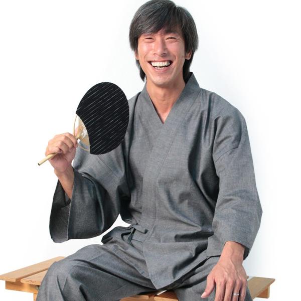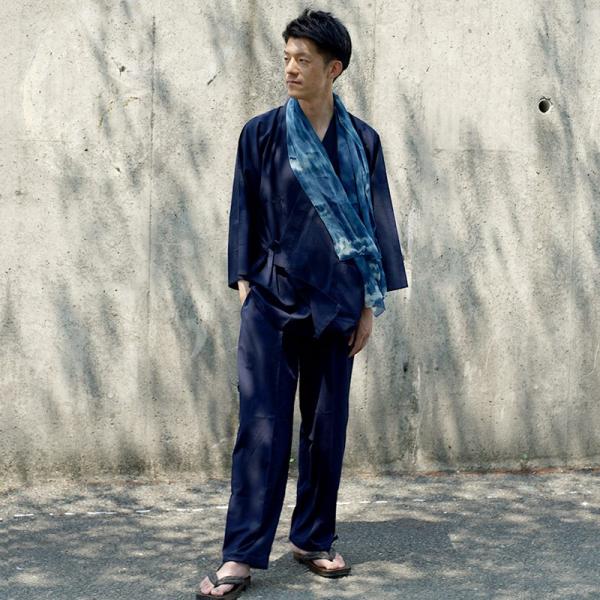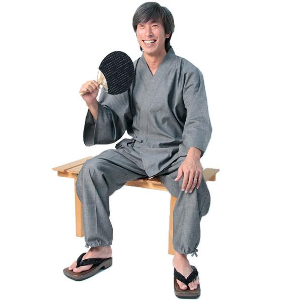 甚平と同じ素材を使用した長袖長ズボン型の作務衣は甚平よりも上品な印象に。