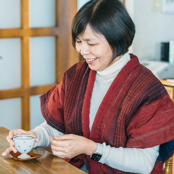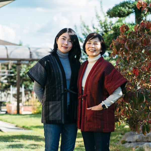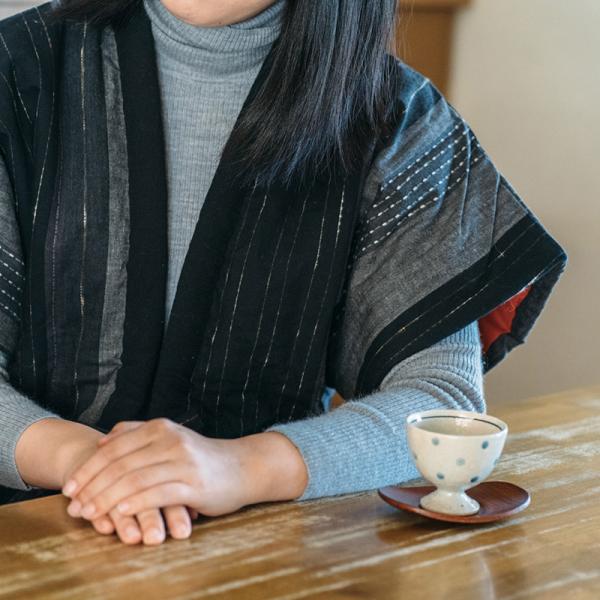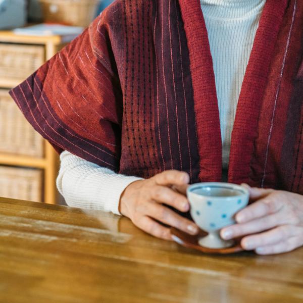 和木綿「冬椿」を使用した半袖半纏。