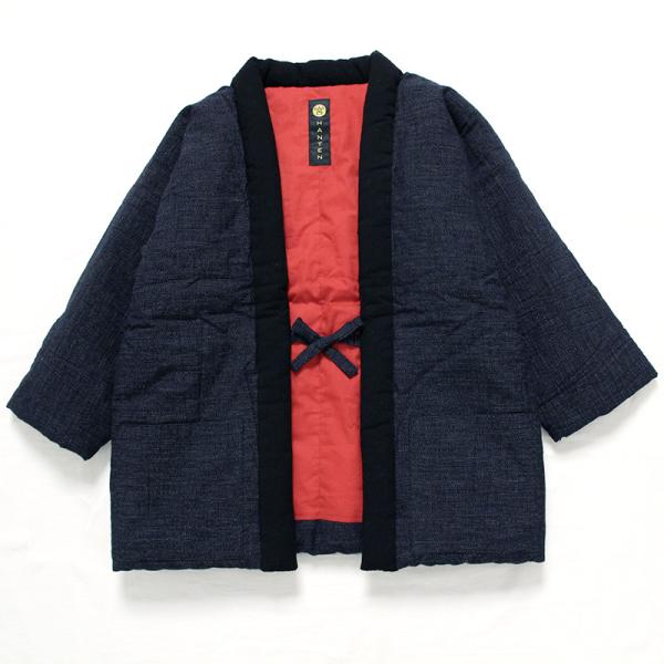 白根はんてん(袢天・半纏) shortsized 日本製 宮田織物謹製 袢纏 どてら メンズ・レディース 綿入り 久留米 和モダンシリーズ 黒・紺 ショート67cm丈