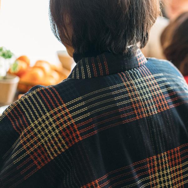 和木綿「結」を使用した華やかな印象のわた入れ半纏。