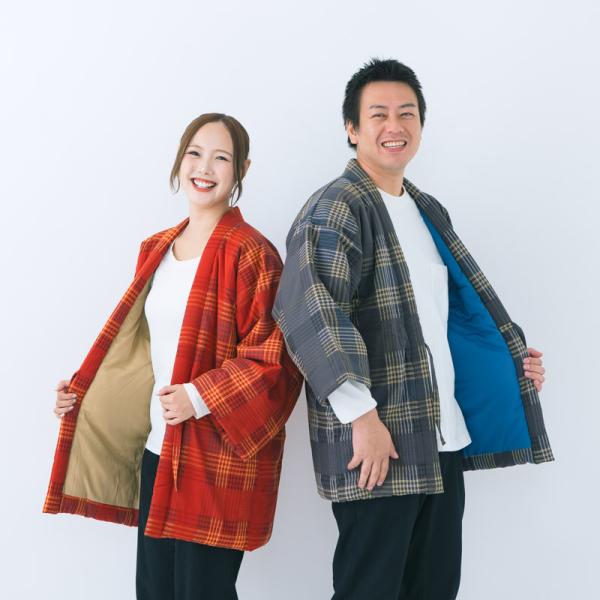 結はんてん(袢天・半纏) 日本製 宮田織物謹製 袢纏 どてら メンズ・レディース 綿入り 和モダンシリーズ 黒 赤 グレー NHKドラマ10 正直不動産2 ご着用