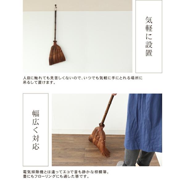 電気掃除機とは違ってエコで音も静かな棕櫚箒。