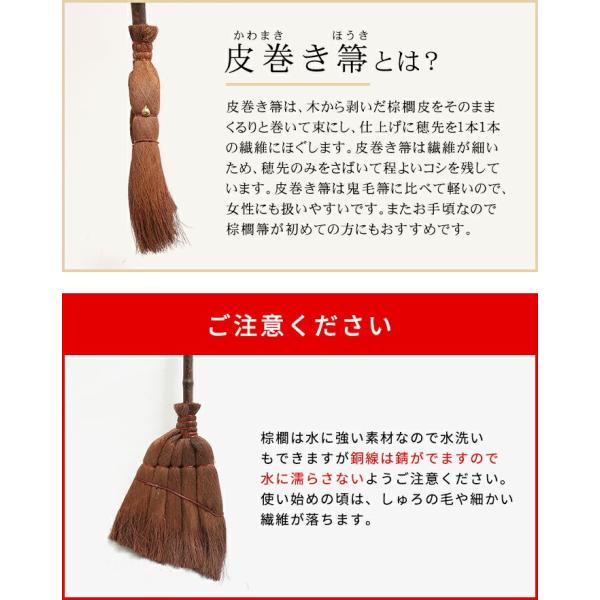 畳み掃に最適。和歌山県 紀州伝統デザイン皮巻き棕櫚箒。