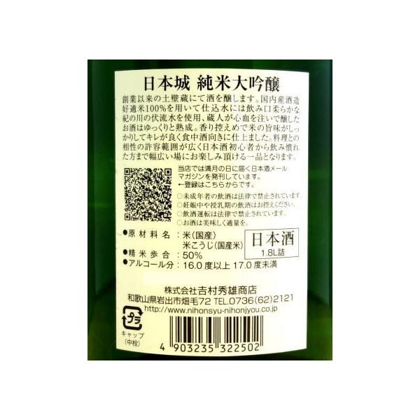 身近にこんなに素敵なお酒が 和歌山 日本城極上純米酒(純米大吟醸)