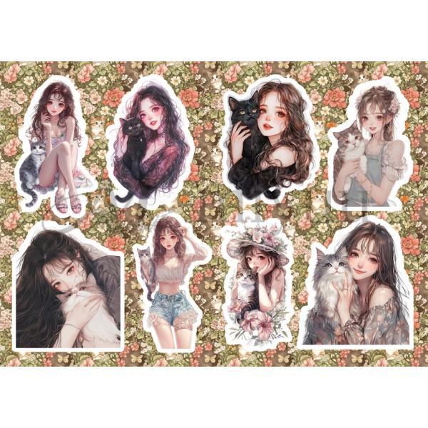 コラージュシート 素材紙 a4デザインペーパー 人物 女の子 Ran様 コラボ ネコ 犬 カフェ デザインペーパー セット a4 コラージュ素材 紙もの ペーパー