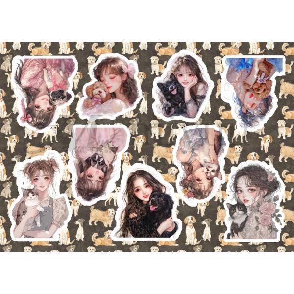 8種類のシートに65人のカフェガールとわんねこちゃんを抱っこした