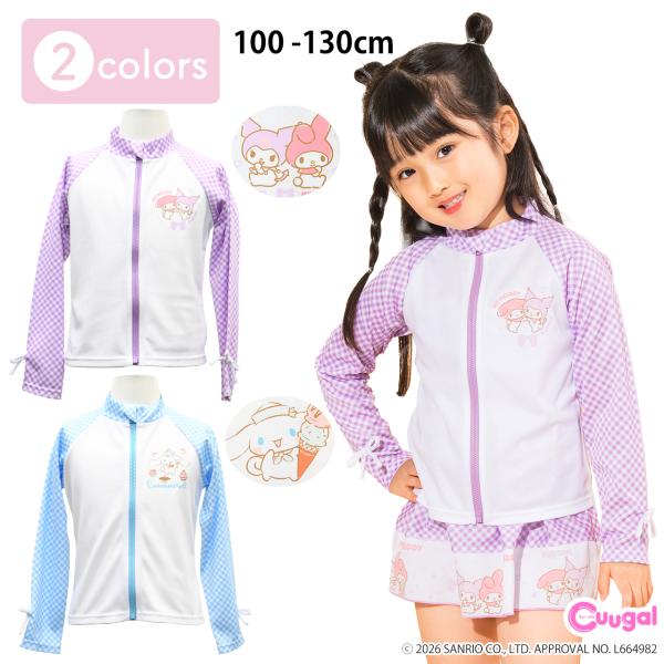 ラッシュガード キッズ 女の子 長袖 サンリオ マイメロ クロミ シナモ 水着 子供 小学校 中学校 スタンド 日焼け防止 ジップあり UV対策 紫外線対策