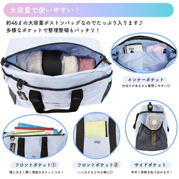 ボストンバッグ バッグ ALGY アルジー 修学旅行 大容量 子供 小学生 キッズ 2泊 46l 軽量 女子 中学 旅行 2366531
