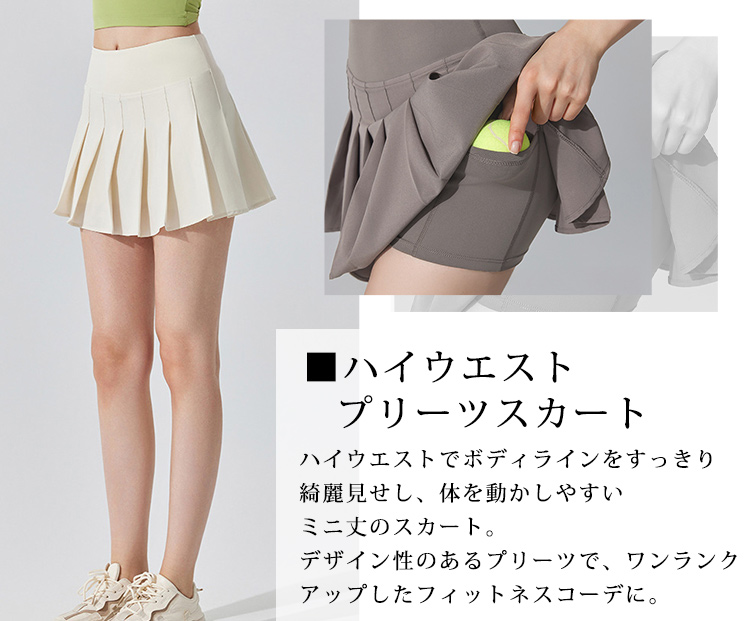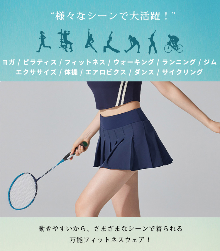 メール便送料無料 スコート テニス レディース プリーツ テニスウェア ヨガウェア ヨガスカート ミニスカート スポーツウェア フィットネスウェア トレーニングウェア ジムウェア インナーパンツ付き 体操服 応援団 ダンス衣装 ハイウエスト ピラティスウェア ゴルフ 薄手 伸縮性 吸水 速乾