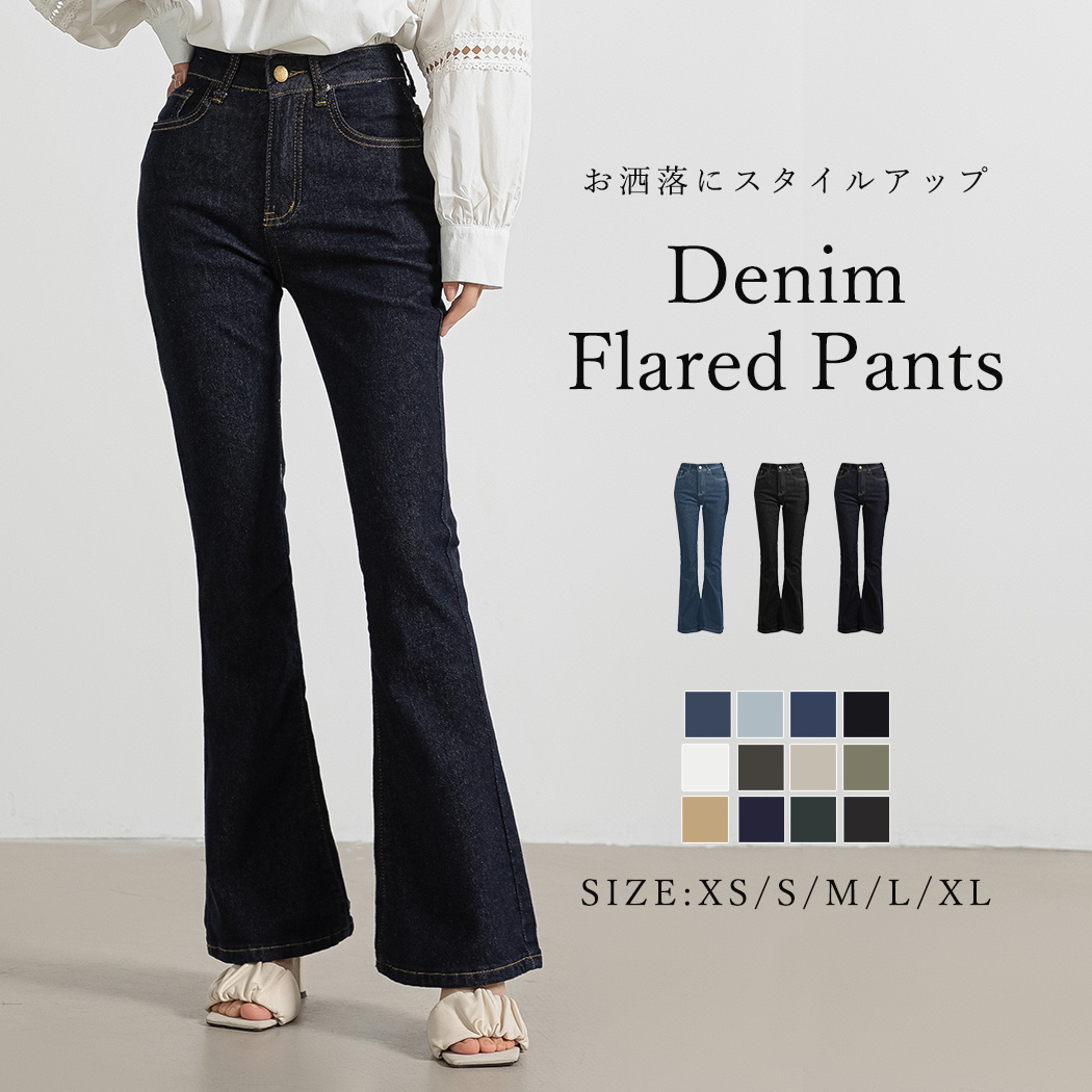 メール便送料無料 デニムパンツ レディース 大きいサイズ ボトムス ジーパン フレア きれいめ 黒 白 秋冬 春夏 オールシーズン 着回し 薄手 ストレッチ 伸縮性 ポケット ハイウエスト 脚長効果 フロント ストレッチパンツ ブーツカット
