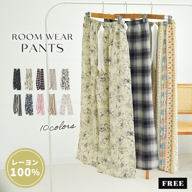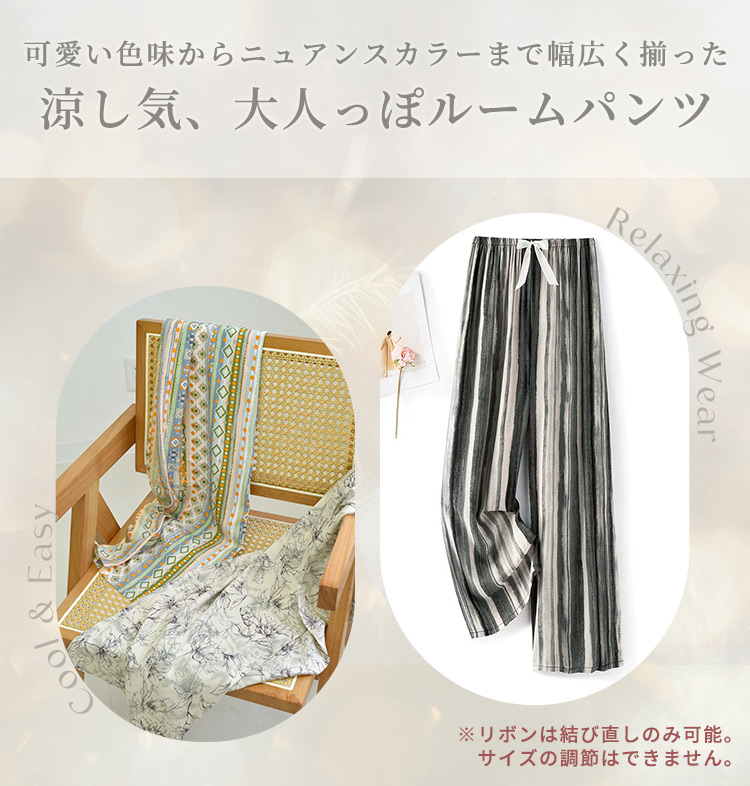 メール便送料無料 ルームウェア レディース ボトムス パンツ パジャマ 下のみ 部屋着 ナイトウェア ルームパンツ ゆったり ロングパンツ イージーパンツ ウエストゴム リボン 透け感 総柄 花柄 チェック ボタニカル ストライプ 薄手 ルームパンツレディース 黒 白 春夏