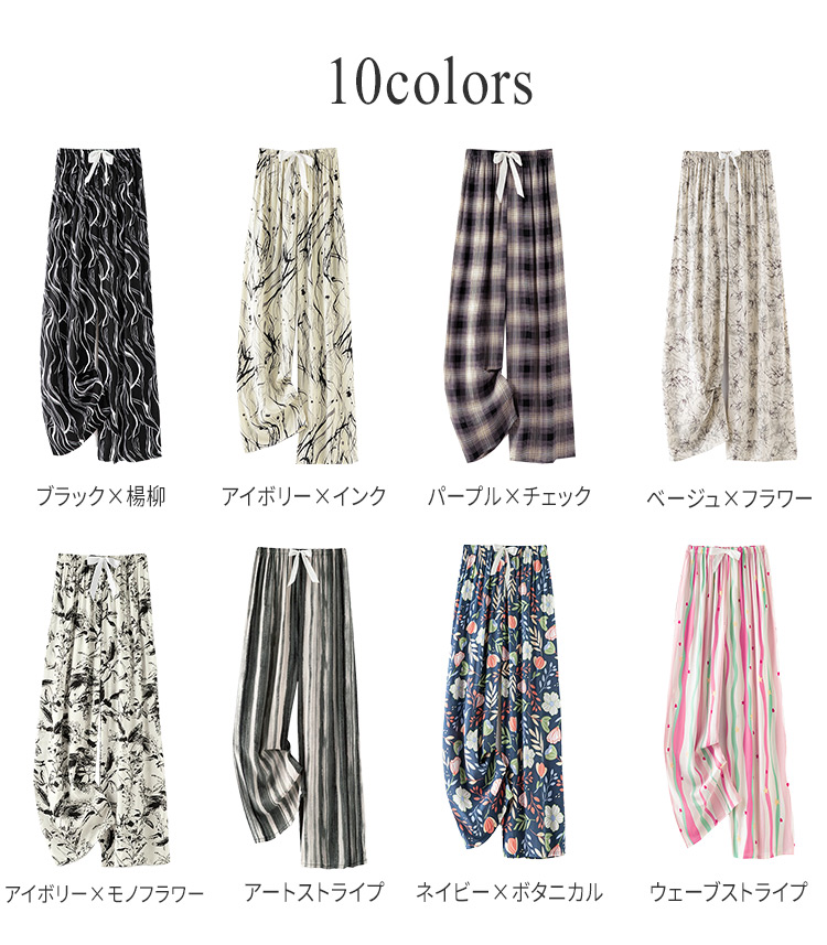 ルームウェア レディース ボトムス パンツ パジャマ 下のみ 部屋着 総柄 花柄 チェック ボタニカル ストライプ 薄手 黒 白 春夏