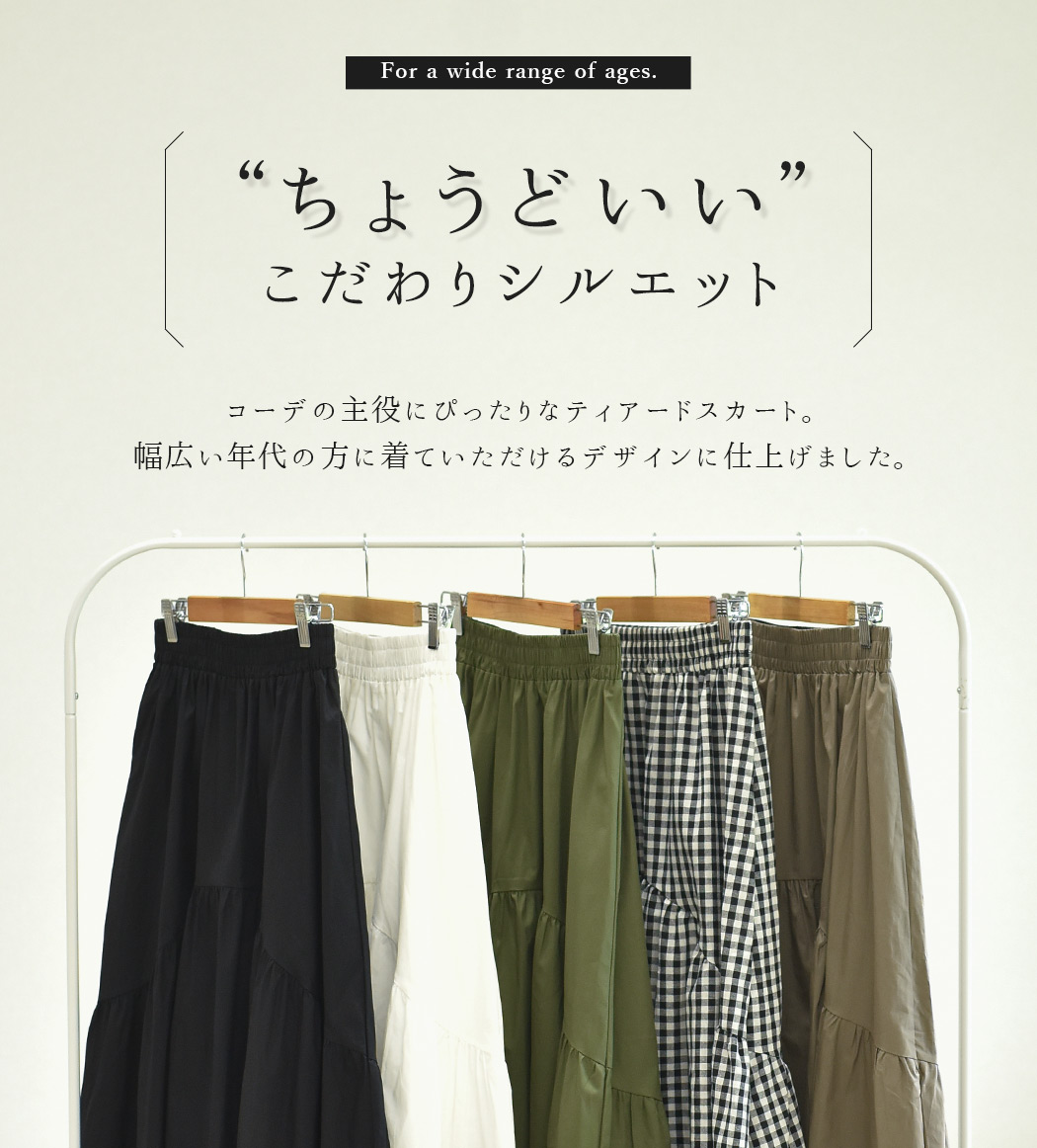 コーデの主役にぴったりなティアードスカート。