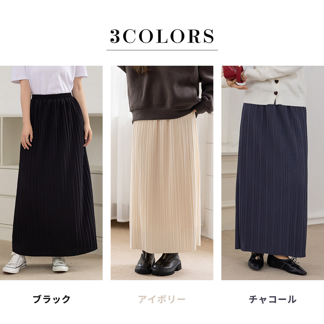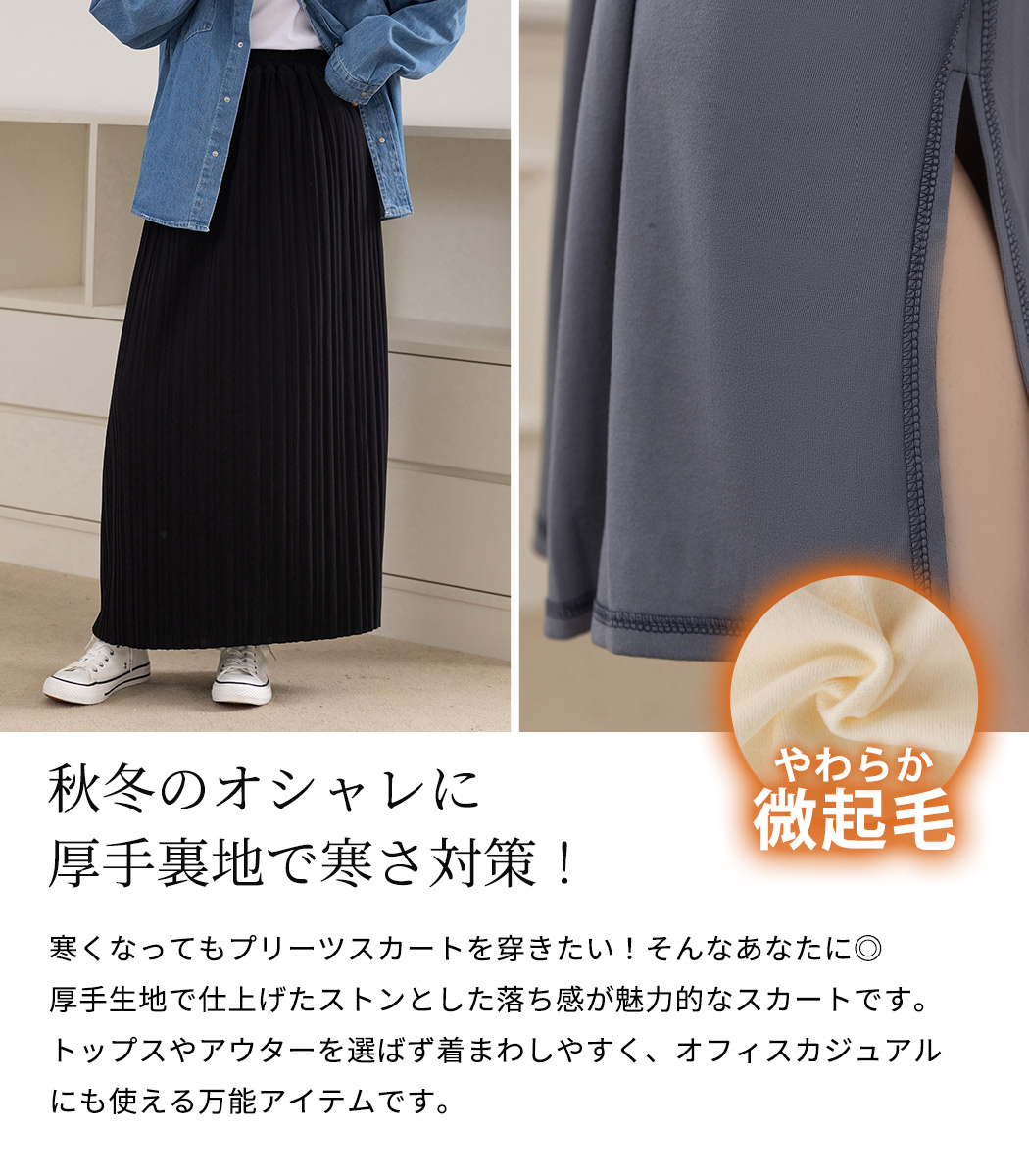 プリーツスカート ロング レディース きれいめ ボトムス 寒さ対策 マキシ丈 柔らかい 微起毛 裏地付き サイドスリット ウエストゴム 秋冬