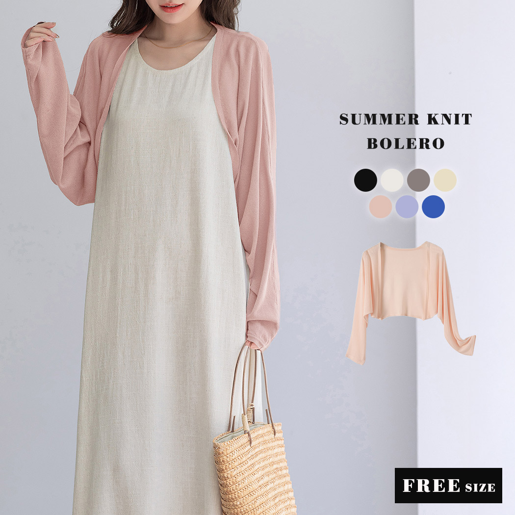 ボレロ カーディガン ショート丈 薄手 レディース 長袖 トップス サマーニット 透け感 ドルマンスリーブ 通勤 通学 事務 白 黒 夏 春 秋