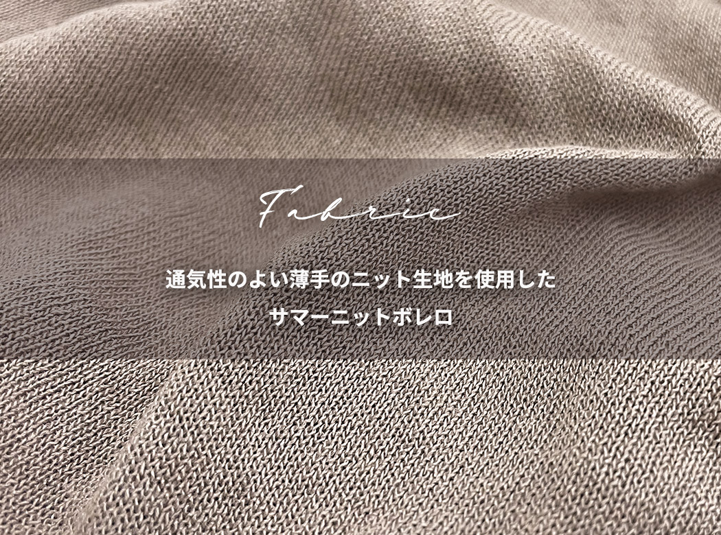 通気性のよい薄手のニット生地を使用したサマーニットボレロ