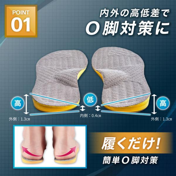O脚矯正インソール 疲れない 中敷き O脚補正 インソール 衝撃吸収 扁平足 土踏まず アーチサポート 足底筋膜 矯正 ひざ痛 補正 高低差 男女 姿勢矯正