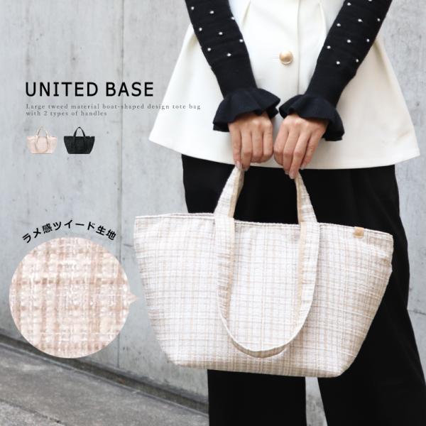 BASE ベース 公式 ツイード トートバッグ レディース BAG きれいめ 大人 手提げ 大きめ かわいい 軽量 大容量 ママバッグ 旅行 高見え 船形 肩掛け 秋冬 秋 冬