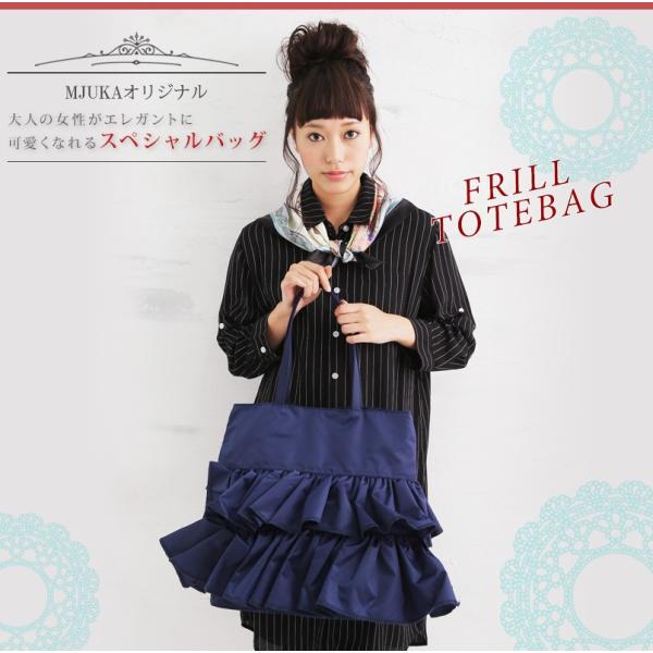 大人可愛いデザインがかわいいフリルトートバッグ。