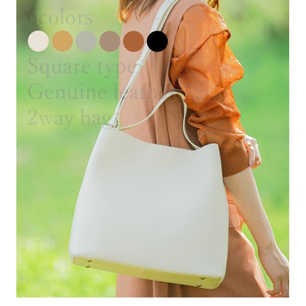 【送料無料】 本革 2way トートバッグ ショルダーバッグ レディースバッグ 本格 スクエア型 上品 お洒落 女性 キレイ 大人 シンプル 通勤 無地 デイリー 三層式