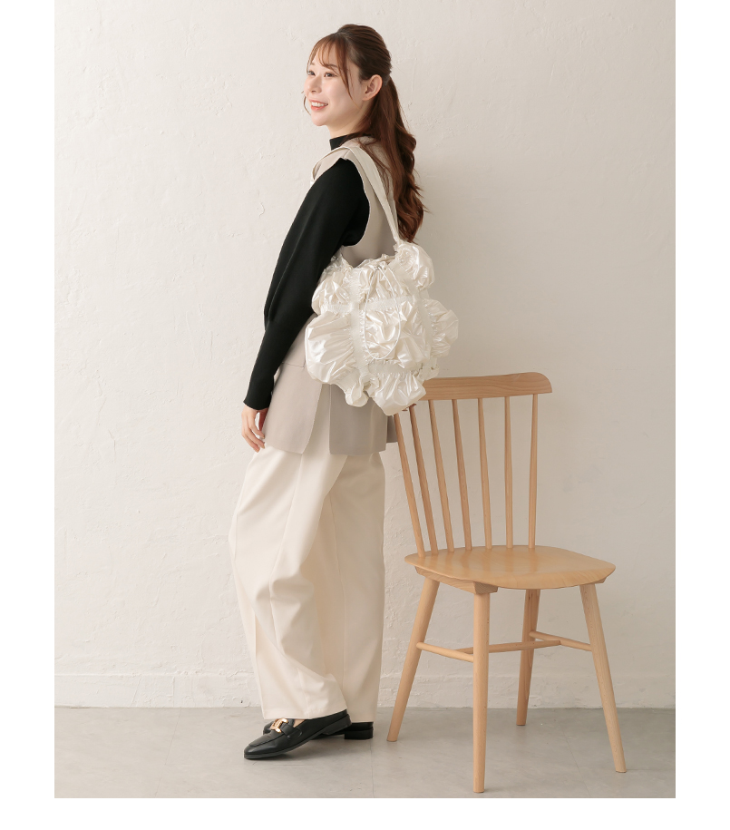 BASE ベース 公式 トートバッグ バッグ ショルダーバッグ レディース 女性 軽量 くしゅくしゅバッグ フリルバッグ 光沢 シルバー かわいい 大人 大容量 シンプル
