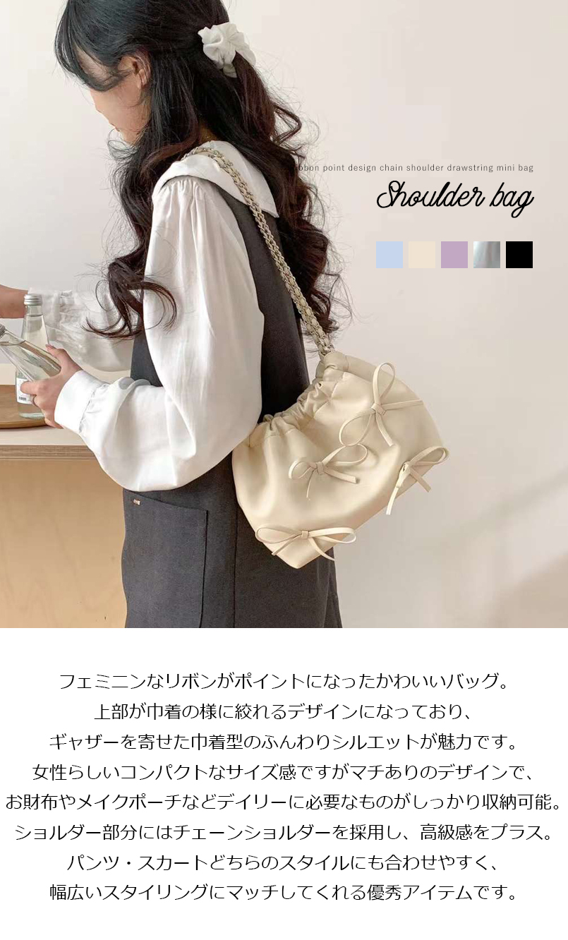 りぼん バッグ ショルダーバッグ ショルダー レディース 女性 ミニバッグ ミニショルダー 軽量 軽い 巾着 かわいい 可愛い ガーリー フェミニン 女性 パーティー パーティーバッグ リボン チェーンショルダー