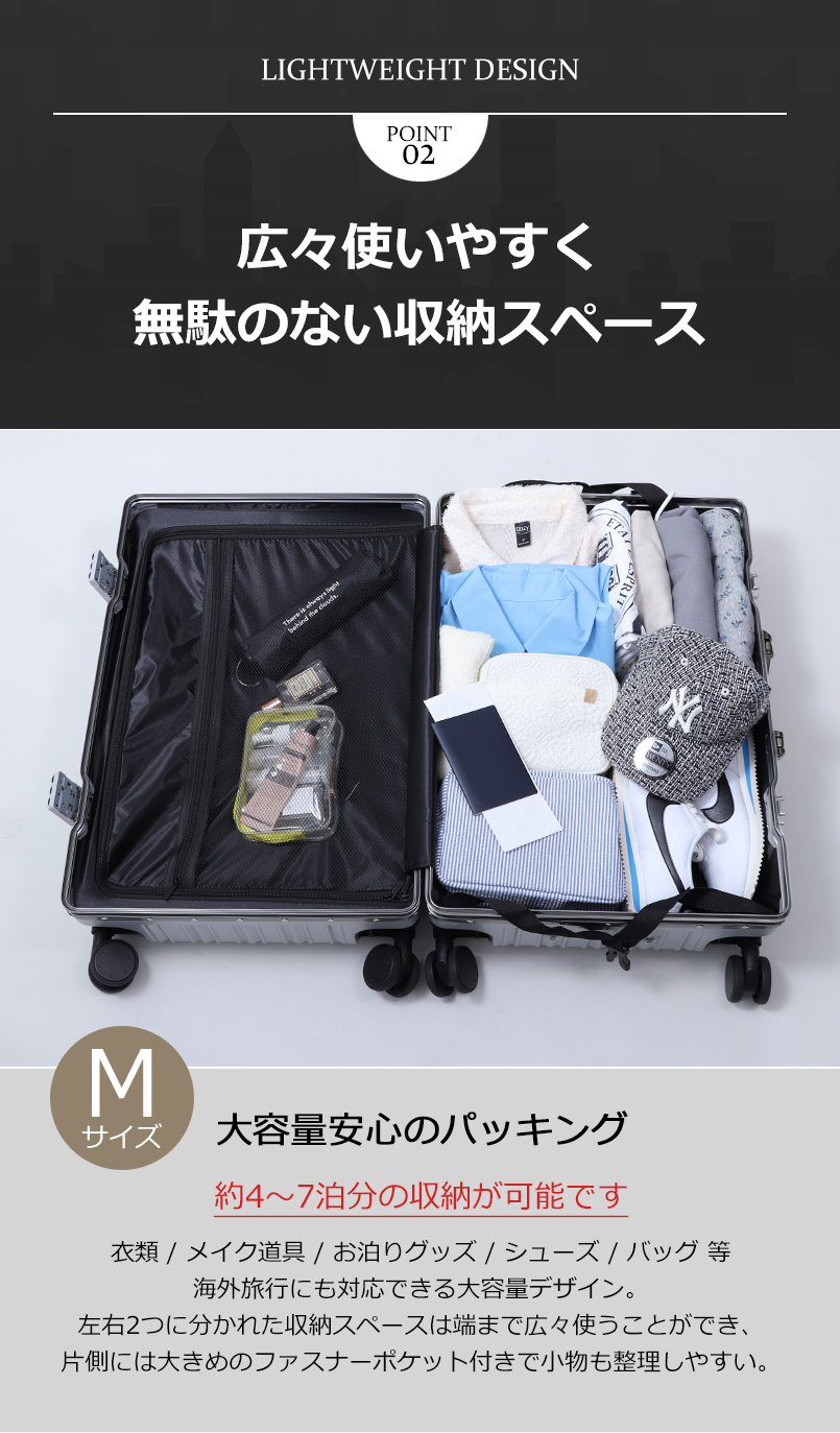 商品名 スーツケース キャリーケース キャリーバッグ 機内持込 機内持込サイズ TSAロック TSA Mサイズ 60L 軽量 男女兼用 ユニセックス 4-7泊用 トラベル 旅行 修学旅行 海外旅行 国内旅行