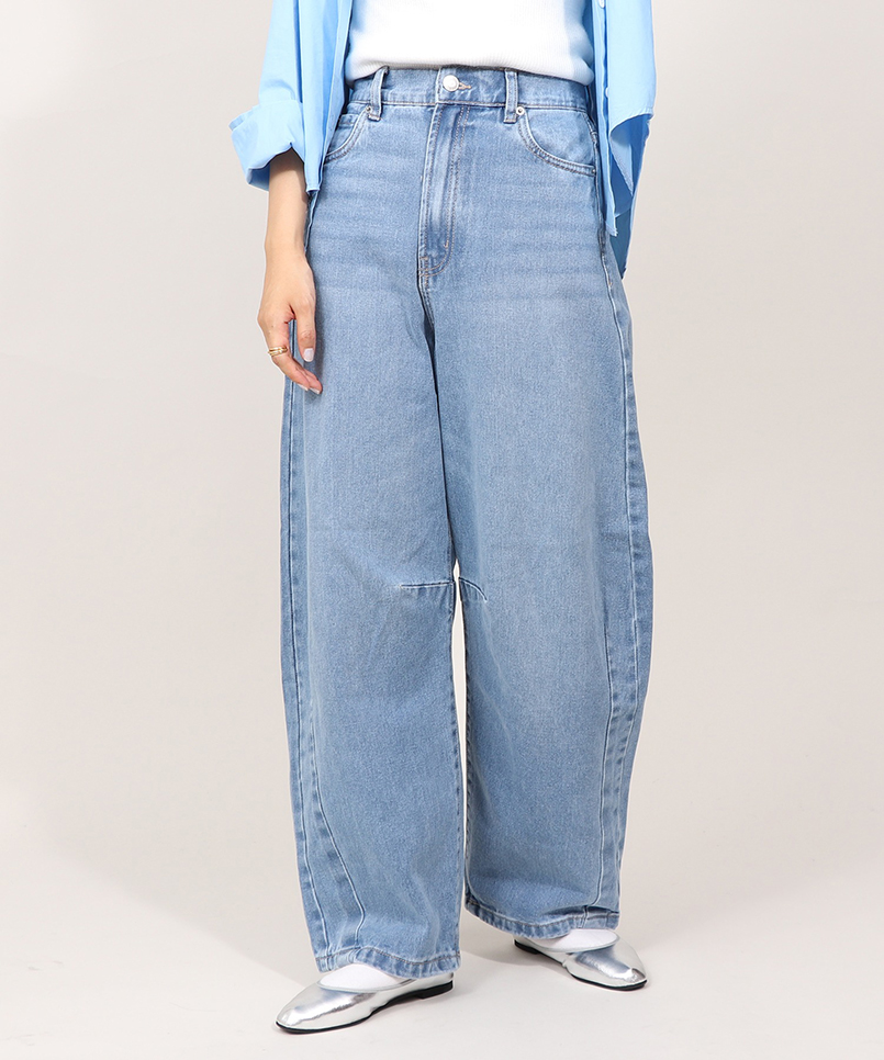 BASE ベース 公式 カーブラインデニムパンツ ボトムス デニム パンツ レディース ジーンズ カーブパンツ ハイウエスト ワイドデニム ゆったり 着痩せ Mサイズ